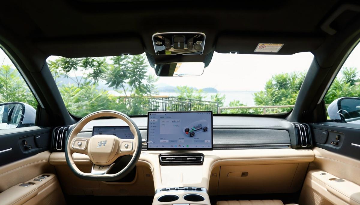 相比车外,捷途山海L7 PLUS的车内看点更多。首先,整个布局简洁清爽,多种材质拼接层次感很足。其次,车内整体都有大面积软质材质包覆,再加上木纹饰板、金属镀铬饰条,整体档次感很足。然后,除了提供内置语音大模型的TOUR OS 3.0车机系统,还给到了可左右10度旋转的15.6英寸向日葵屏、50W无线快充,以及支持7.1全景声的12扬声器的伯牙之音等配置。
