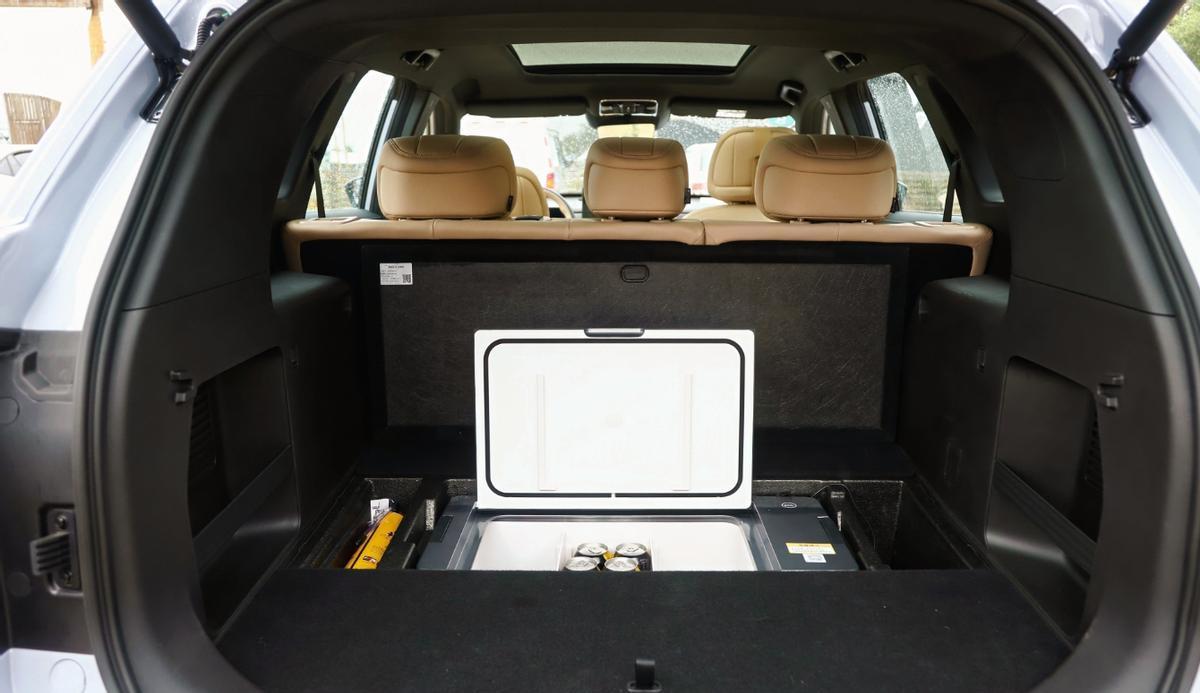 值得一提的是,除了前排扶手箱配备冰箱,后备厢还有下沉式大冰柜,容量达到20升,支持三个温区,温度调节范围为零下10度-零上10度。